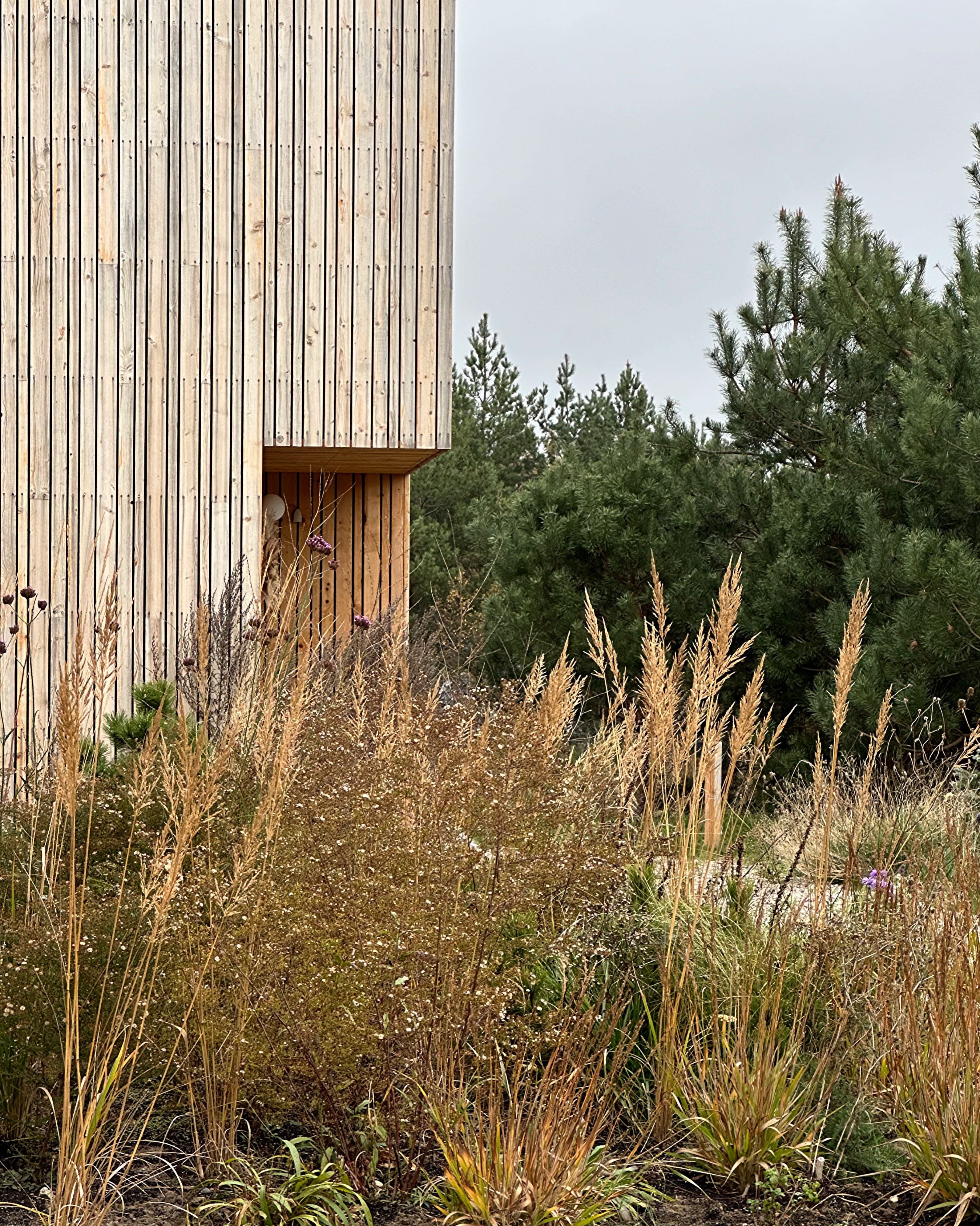 Założyliśmy 8 rabat bylinowych przy domkach w Morze Sasino. Do tego zadziczyliśmy przestrzeń miedzy nimi, tworząc miedze z lokalnych gatunków drzew, krzewów i pasów łąki.